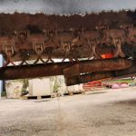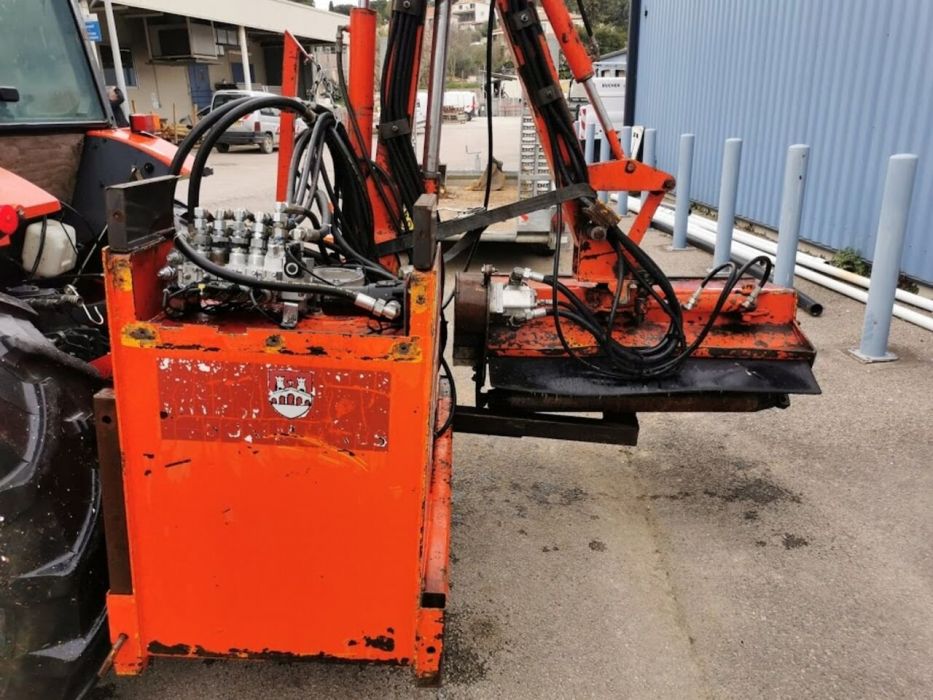 La tète de l’épareuse est pivotante et se place sur l’arrière du tracteur en action de coupe